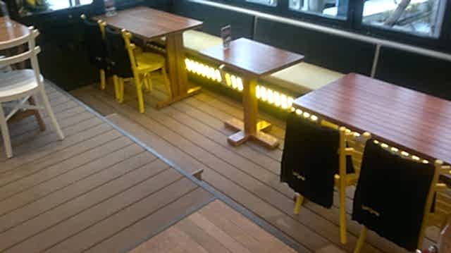 Azerbaycan'da ahşap kompozit döşeme uygulaması için Cafe Bistro Nüansları Deck tercih edilir.
