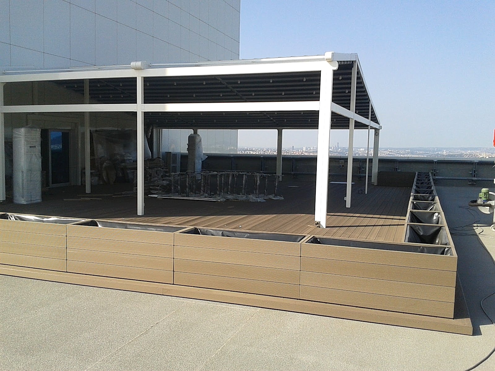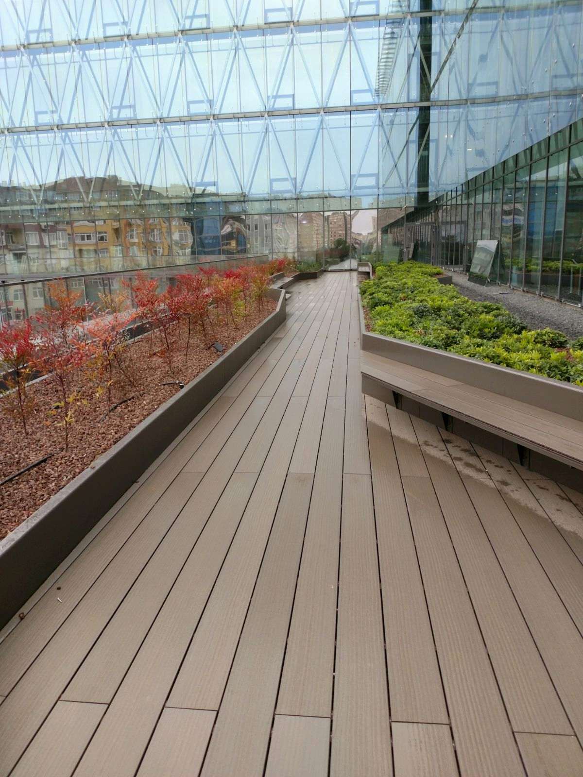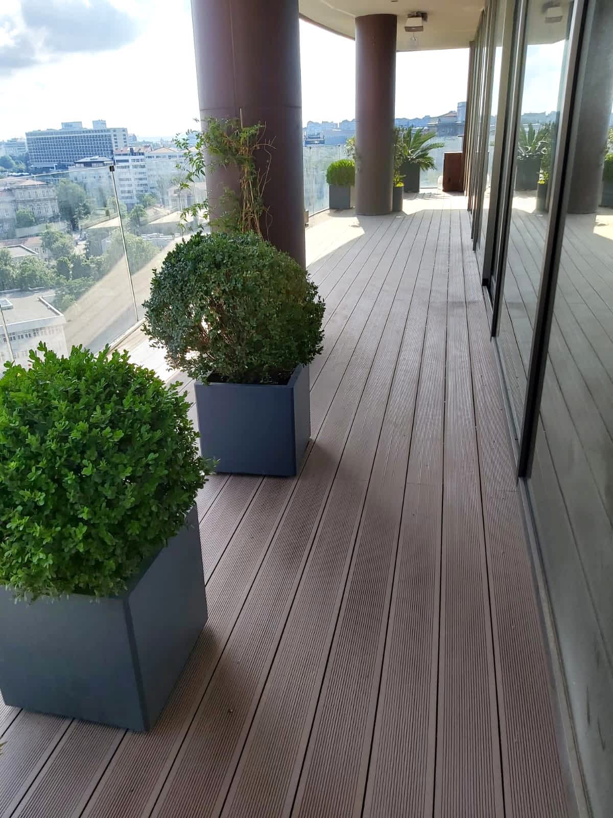 ERGO Azerbaycan'da Genel Müdürlük binasının teras katında Twinxor Terrace WPC Deck uygulaması yapıldı ve terasın estetiğini tamamlayan Uluslararası Kompozit Plastik Sistemler kullanıldı. Zemin ve çiçeklik saksıları da eklendi.