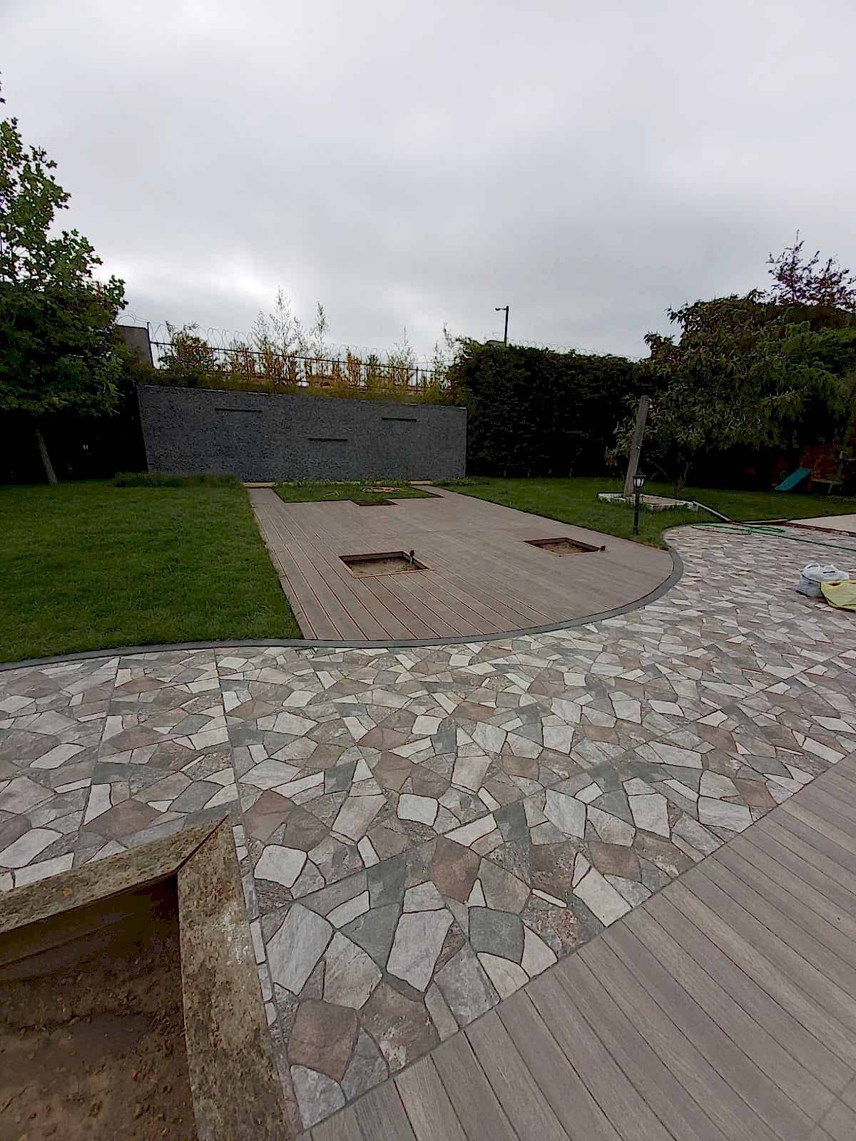 Azerbaycan'da teras katı için destek sistemleriyle ahşap kompozit döşeme kuruluyor, Taksim Fıtığı Sınamaları için uygun bir seçenektir.