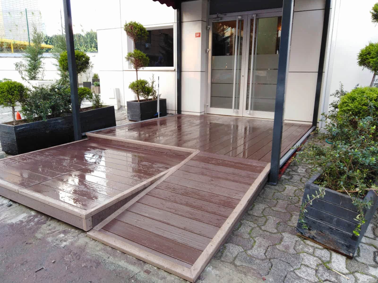 Azerbaycan'da ahşap kompozit döşeme uygulaması için Cafe Bistro Nüansları Deck tercih edilir.